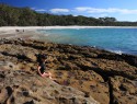 Ano, moc pěkné a ten bělounký písek. Cítím ho všude. Papa